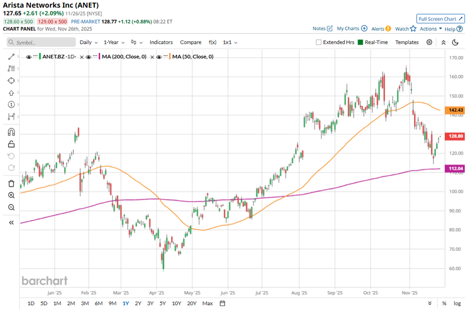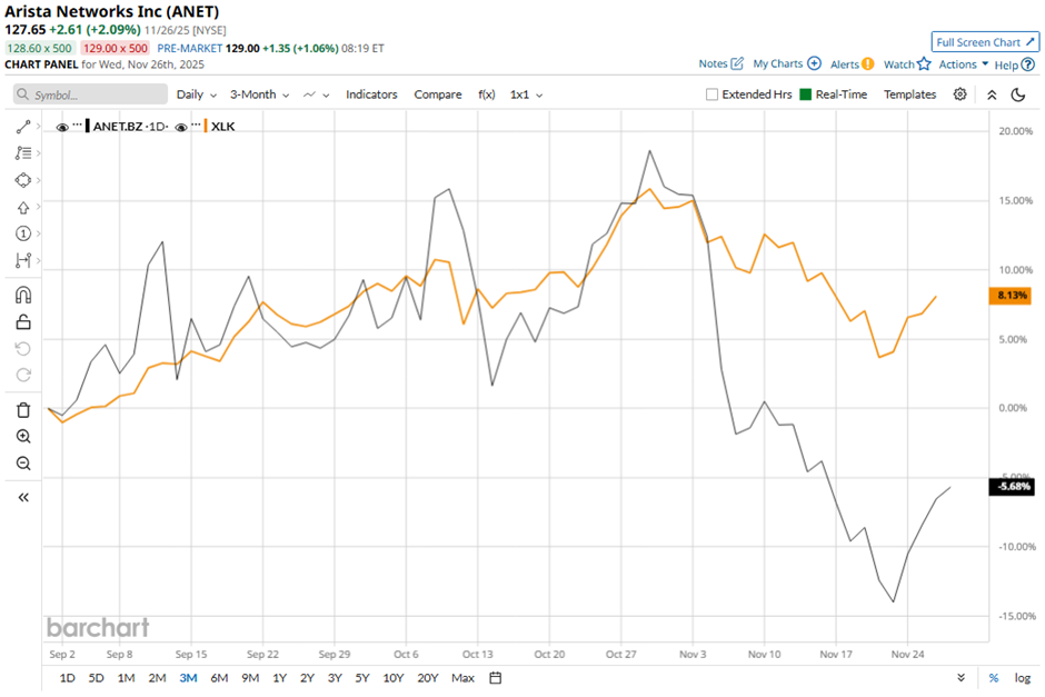Shares of the Santa Clara, California-based company have dipped 22.6% from its 52-week high of $164.94. Over the past three months, ANET stock has decreased 4.9%, lagging behind the Technology Select Sector SPDR Fund's (XLK) rise of 7.9% during the same period.