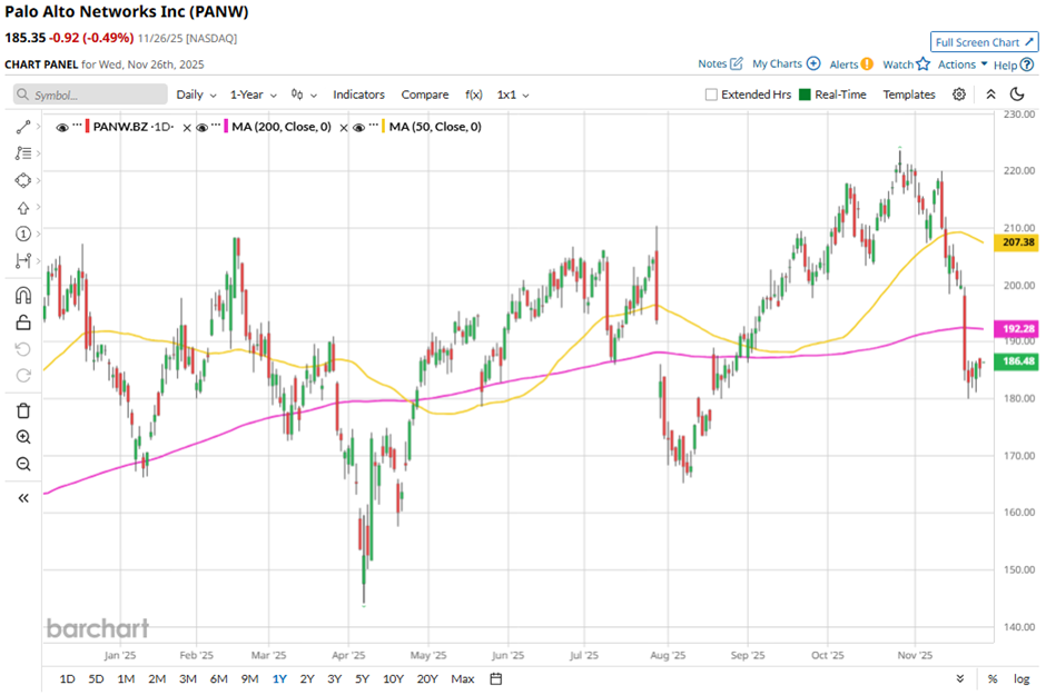 Despite reporting stronger-than-expected Q1 2026 adjusted EPS of $0.93 and revenue of $2.47 billion on Nov. 19, shares of PANW fell 7.4% the next day because investors reacted negatively to the company’s plan to acquire Chronosphere, viewed as a costly and high-risk move. The worry was that the pricey acquisition could pressure profitability even though total revenue grew 16% year-over-year to $2.5 billion and Next-Generation Security ARR rose 29% to $5.9 billion.